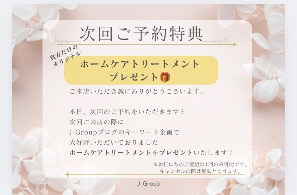✨J-Groupオリジナルトリートメント✨をGETしてくださいね。